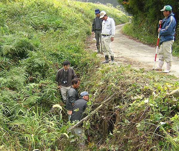 土管の上の道路端の崩れが気になる。