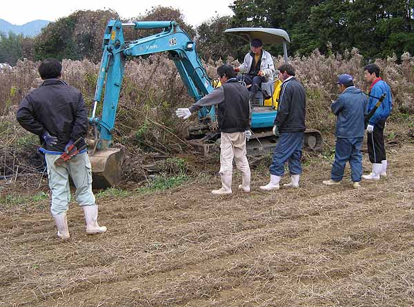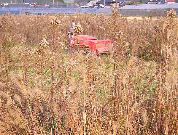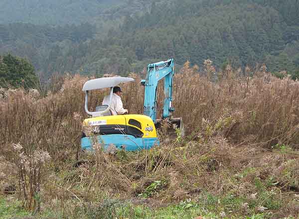 放置された水田のセイタカアワダチソウを刈る。