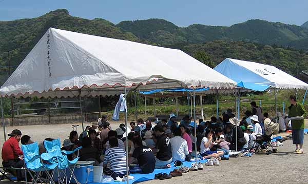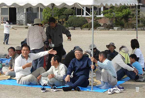 区民が隣保班ごとに昼食