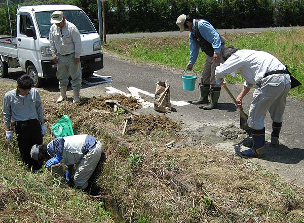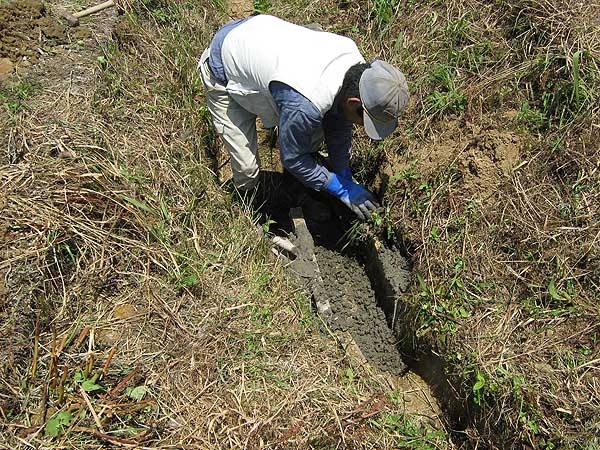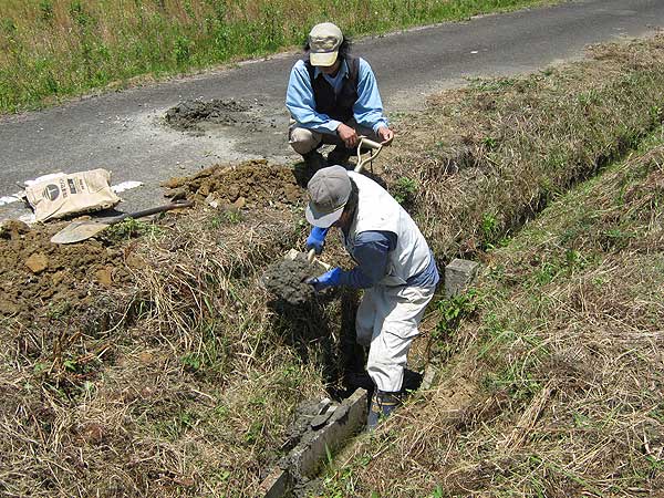 U字溝の側面にもセメントを流し込む