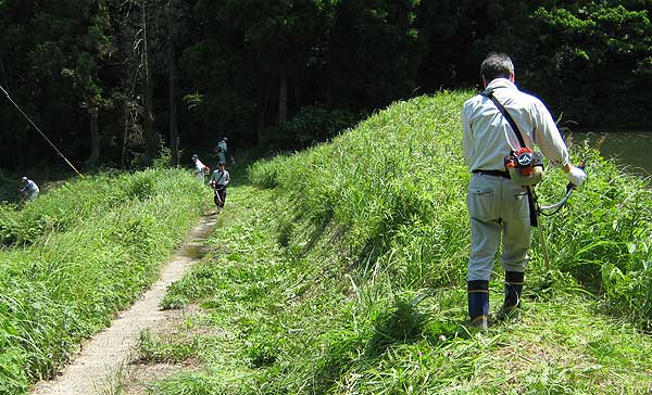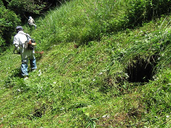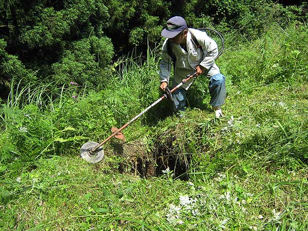 現場撮影のために草刈作業