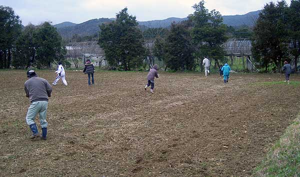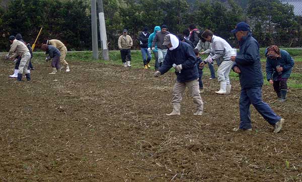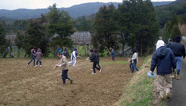 老人会、子供会も一緒になってまいた